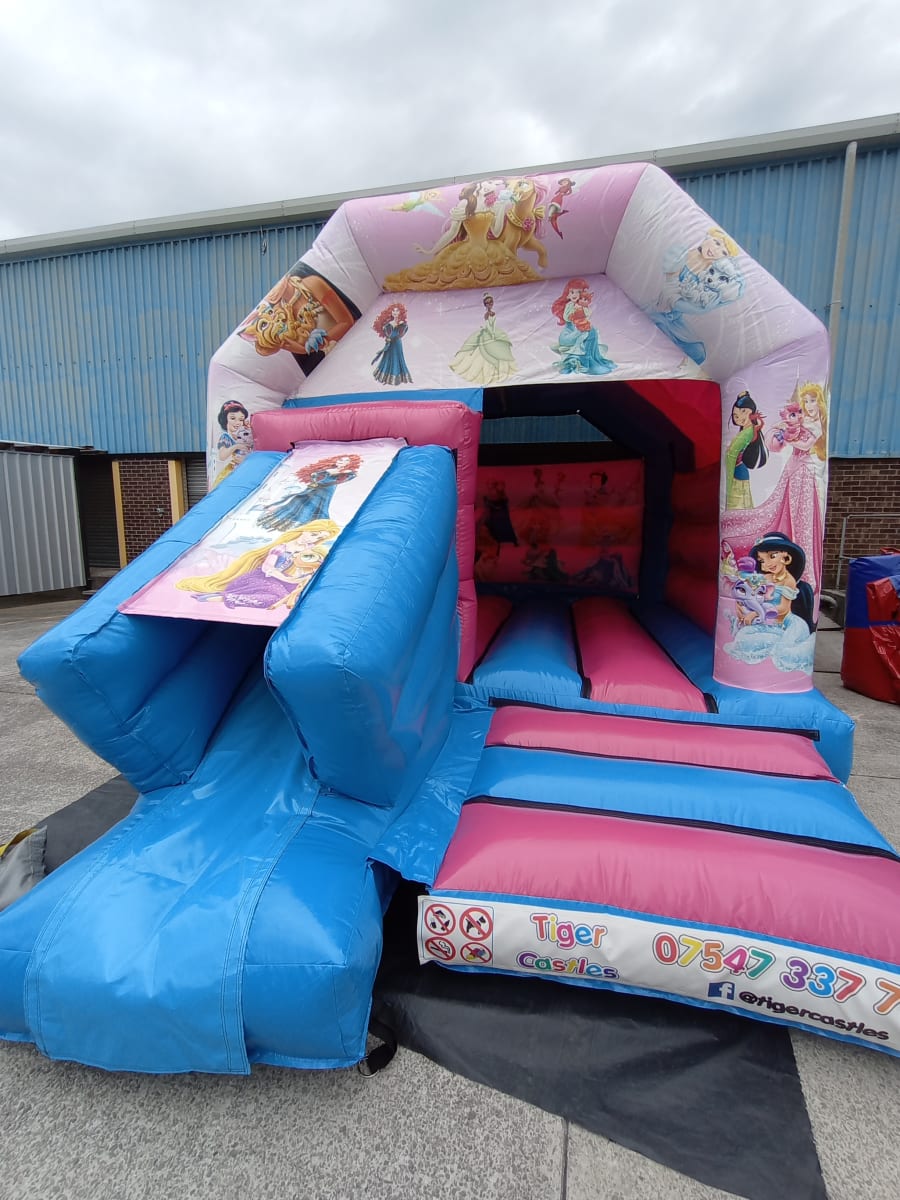 With a footprint of 12ft x 18ft this castle is perfect for children who love all things Princess, it features a front slide which makes this castle a perfect choice for those looking for more than a standard bouncy castle hire.